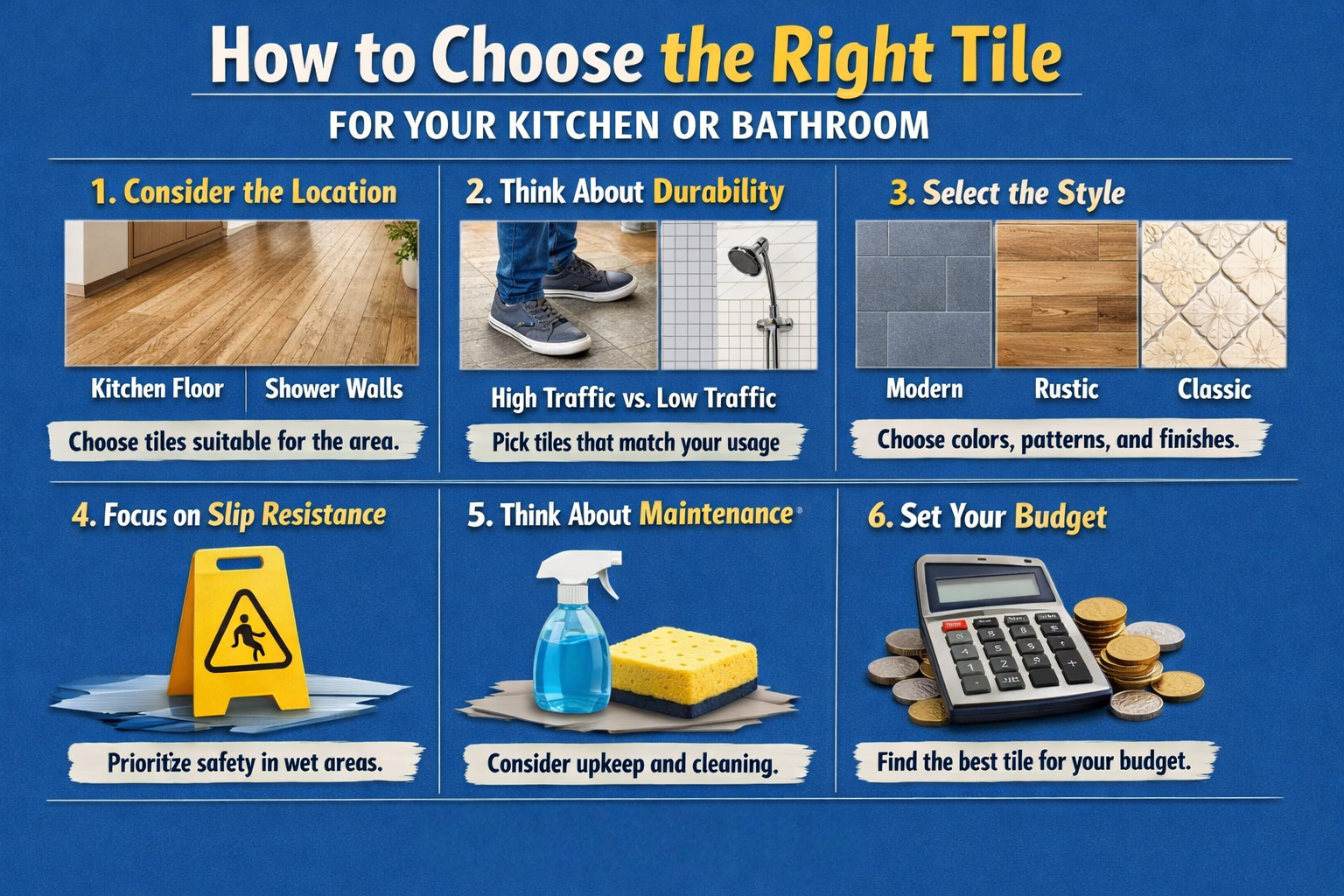 In conclusion, selecting the right tile involves careful consideration of durability, slip resistance, maintenance, and size/format. Understanding these factors will help ensure that your tile choice not only enhances the visual appeal of your kitchen or bathroom but also meets practical needs effectively.